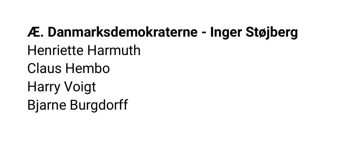 - C. Det Konservative Folkeparti, I. Liberal Alliance, K. Kristendemokraterne og Æ. Danmarksdemokraterne - Inger Støjberg